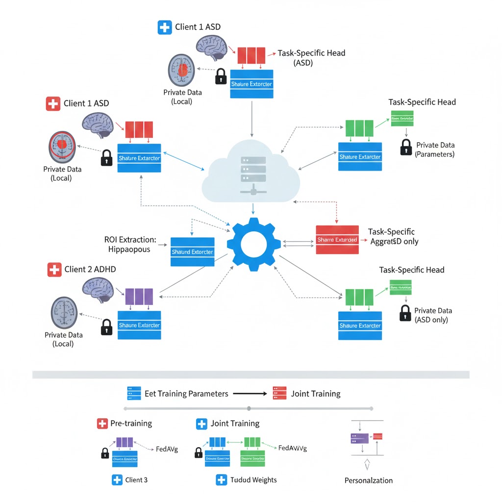 This work presents a federated multi-task learning framework for jointly diagnosing multiple mental disorders from MRI scans, enabling collaborative learning across distributed medical institutions while preserving data privacy.