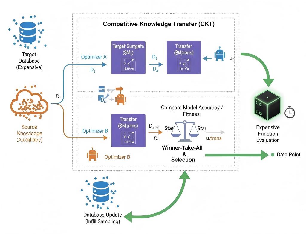 This work introduces a surrogate-assisted optimization approach with competitive knowledge transfer mechanisms, enabling efficient search for expensive optimization problems by leveraging historical optimization experiences.