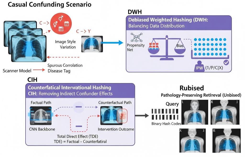 Anti-Confounding Hashing: Enhancing Radiological Image Retrieval via Debiased Weighting and Counterfactual Reasoning