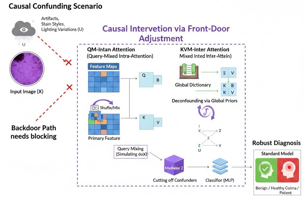 This work introduces CausalMixNet, a mixed-attention framework that employs causal intervention techniques for robust medical image diagnosis, addressing confounding factors and improving generalization.
